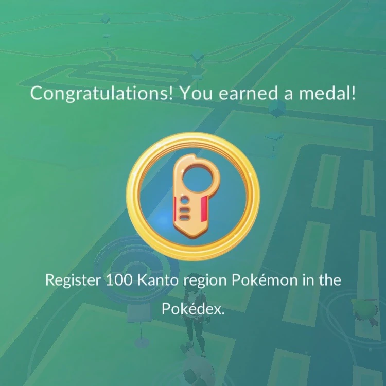 Earning a gold medal for registering 100 Kanto region Pokémon