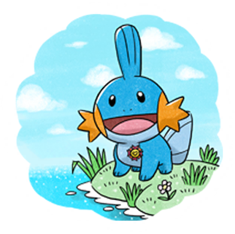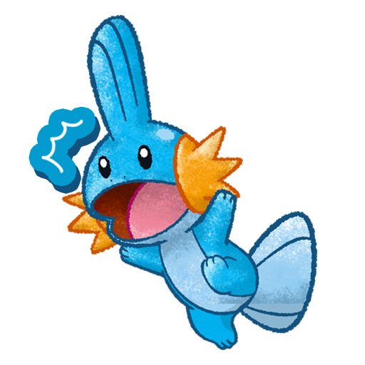 Mudkip is a Water-type Pokémon from the Hoenn region. It evolves into Marshtomp when fed 25 candies and its final evolution is Swampert.