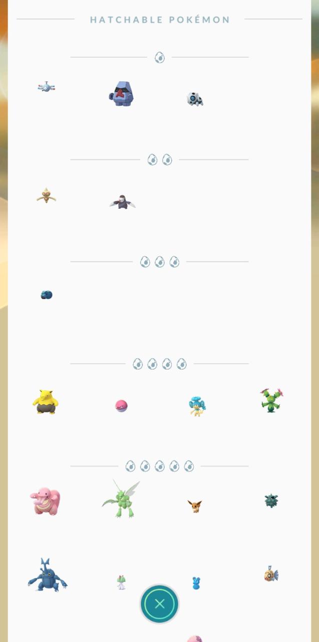 Since the release of the game, there have been several changes to distances and the list of Pokémon that could be hatched from eggs. Most of these changes occur due to major releases of new Pokémon or temporarily for the duration of a specific event.