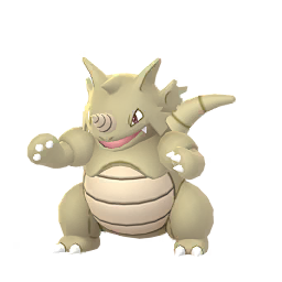 Rhydon is a Ground, Rock-type Pokémon from the Kanto region. It evolves from Rhyhorn after being fed 25 candies and evolves into Rhyperior when fed 100 candies and given a Sinnoh Stone.