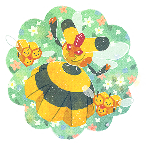 Its abdomen is a honeycomb for grubs. It raises its grubs on honey collected by Combee.
